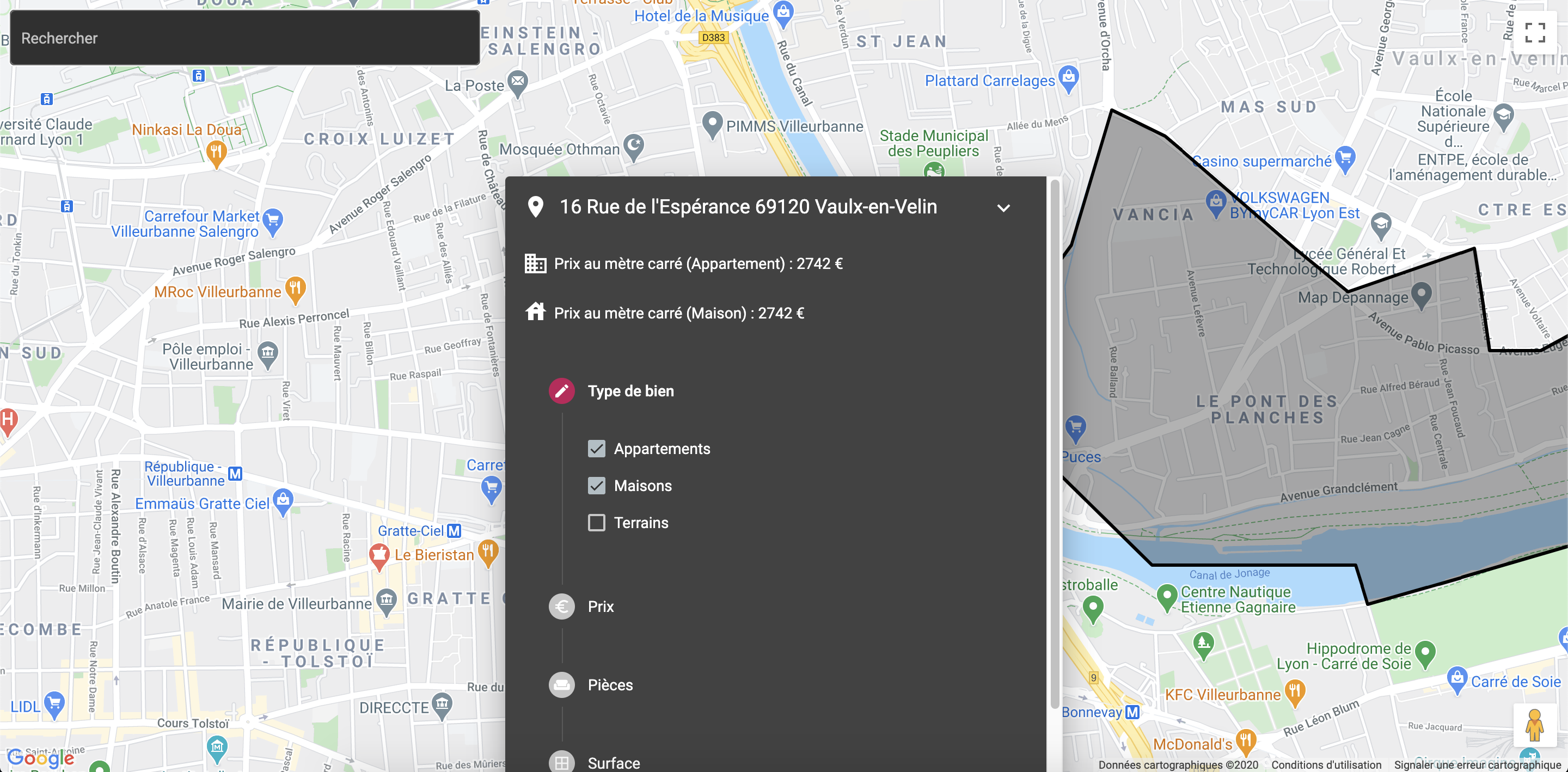 Get price information about the real estate market according to any neighborhood or any city in France.